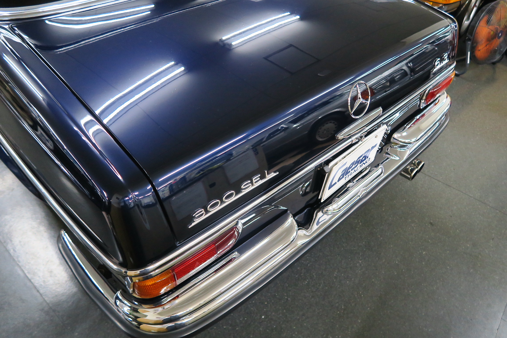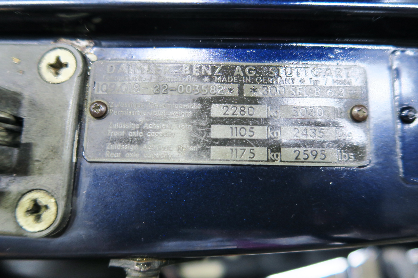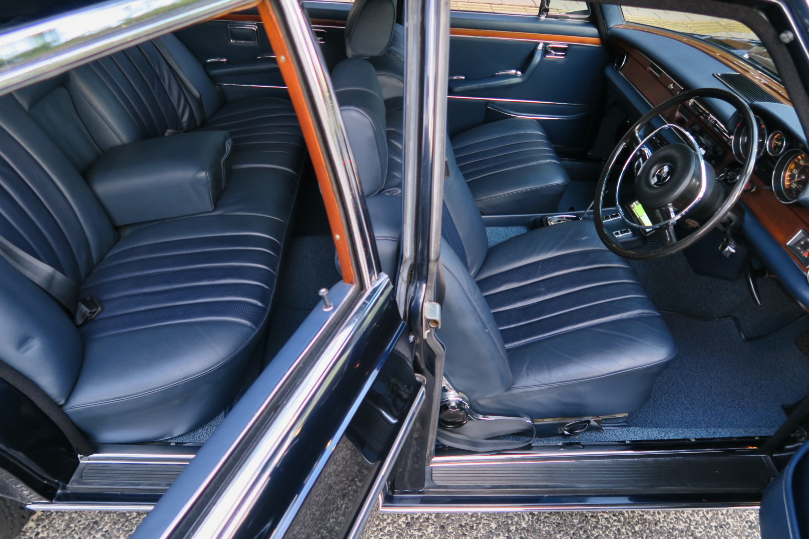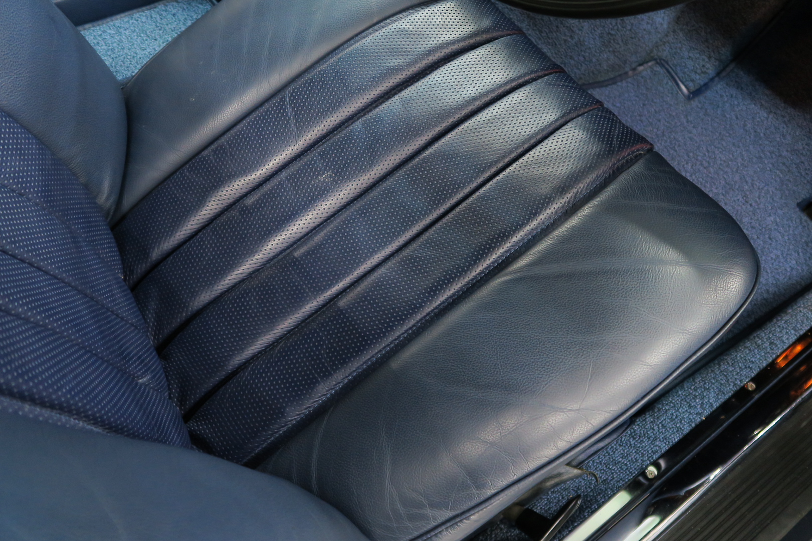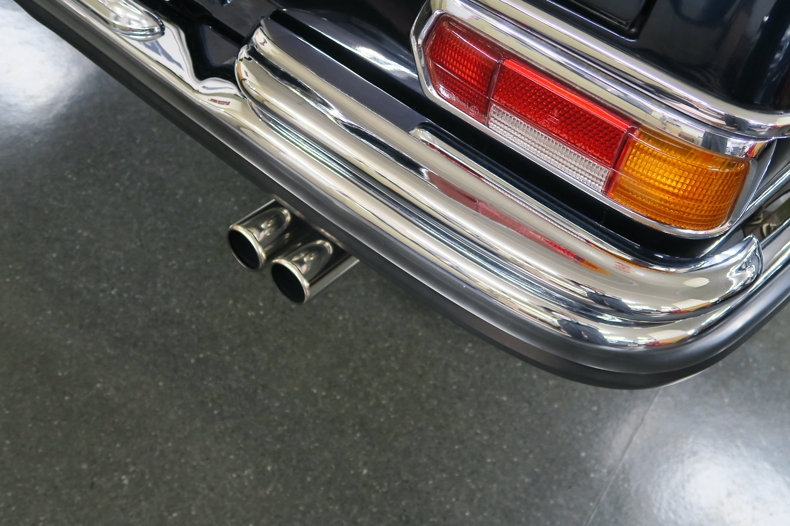 「300SEL 6.3」物語 1967年〜1972年の間に生産された「W109」タテ目の「300SEL」の 「6.3」である。 それも、ウエスタン自働車(ディーラー)物の「右ハンドル」 しかも、3オーナー、前オーナー様は、昭和59年から41年間も ご所有。 このモデルの生い立ちは、極めて興味深く、面白い。 こんな無茶なモデルがなぜに誕生したのか? ベースモデルは、1965年に発売されたばかりの最上級高級セダン「300SEL」 このモデルは、直列6気筒、3L、170馬力、 この頑丈なシャーシに目を付けたのが、エンジニアの「エーリッヒ・ヴァイクセンベル ロー」(文中:ベルローに短縮)。 1966年、「この300SELのシャーシなら、M600エンジンを積んだら面白そ〜 で、社内で こっそく時間を見つけて、載せ替え、完成させた車で、工場の敷地を 走り回った、、そして、その「音」でバレた、、 明らかに、聞くはずのない「音」、、工場責任者「ドルフ・ウーレンハウト」に見つか る。 彼はベルローに じっくり話を聞いたのち、試乗してみる。 結果、すぐに、開発へのGOサインを出す。 メーカー広報誌によれば、「書類にサインするとき、ウーレンハウトは、 ニヤリと笑ったはずだ、、」 なかなか 粋な会社である。 翌1967年、早くも市販モデル1台が完成。 正式モデル名: 「300SEL 6.3」 文字通り、「600リムジーネ」&「600プルマン」(1963年〜1981年)に積んだ 「M100」エンジン、V8、6.3L、250馬力、を移植。 これは、思った以上に販売不信だった「M100」の使い道を広げる意味もあった。 1968年から、正式に発売、1972年まで販売する。 生産台数: 「6526台」 この変態的怪物モデルは、想定外に 売れた。 ドイツ国内では、1839台しか売れていないが北米を中心とした海外で人気に火が付いた それは、現在でも同じ。 因みに、1967年は我が国でも、あの「トヨタ2000GT」が販売された年。 スペックを比較してみると: ・「300SEL 6.3」 最高速:「221km」 0−400m:「15.4秒」 ・「トヨタ2000GT」 : 「220km」 0−400m:「15.9秒」 ・「67’ ポルシェ911S」 :「225km」 0−400m:「15.8秒」 ・「70’ ハカスカGTR」 : 「200km」 0−400m:「16.0秒」 国内無敵の「2000GT」も、「6.3」に及ばず、ポルシェも「S」以外じゃ、太刀打ち できず、後年発売の「GTR」は、ぶっちぎられる、、まさに、スーパースポーツカー 、、「セダン」のくせに、、本物の「羊の皮をかぶった狼」! しかも、エアサスにレベルコントロール(車高自動調整)、AT、PW、パワステ、 クーラー付きで、乗心地も快適。「アウトバーンの覇者」。 では、当個体のお話: ウエスタン自働車(=ヤナセ=ディーラー)物、右ハンドル、3オーナー 前オーナー様は、昭和59年(1984年)より、2025年まで 41年間 ご所有。 聞けば分かる有名企業のオーナー様で、入手当初は、ヤナセ整備、できるメカニックが 引退したのちは、通常整備は、地元整備工場で、「6.3」ならではの整備は、例の神戸 の専門店様にて。この専門店さまで、2021年に大掛かりな整備、明細残る。 ・エアサス関係・レベリング関係・インジェクション関係・コンプレッサー・ウォータ ーポンプ関係・ブレーキ関係など、「6.3」における「キモ」整備が施されている。 しかも、長年のお付き合いの「正しすぎる一時預かり人」である、前オーナー様は、 弊社に持つ込むまえ、2025年8月、「シーザーさんに迷惑がかからないように」と、 前述の専門店様に入庫、点検依頼、「どこか不具合箇所があれば直しといて」 で、・ヒーターコア脱着・修理、プラグ交換、エンジンオイル交換、各グリスUP、 などなどが施された上で、当社入庫。 感謝・感激。 また、お次のオーナー様にとっても、相当な安心材料であろう。 お金持ち あるあるだが、記録簿とか なんですか それ である。 ただ、車検証上で分かるのは、 令和3年12月: 「77.200km」 令和5年12月: 「78.900km」 現在: 「79.200km」! さらに、当個体は、正しい整備だけでなく、内外装もレストアが施されている。 外装は: 「ダークブルー」メタリックに、全バラシ「オールペイント」済み。 *元色は、「パピルス・ホワイト」 (カラーVINで分かる) 塗装状態も素晴らしい◎。 「300SEL」の5mボディに良く似合うカラーで、重量感を感じる。 実際には、オリジナル「300SEL」の重量は、「1655kg」で、「6.3」は、 「1740kg」なので、85kgしか重くない(エンジンの重さの違い分)のが、、 なんだが、まったくオーラが異なるのは、、私の「6.3」への憧れ だからだけでは なさそうだ。 内装は: 「紺・本革」 「総張替え」 ・シート・ダッシュボード・天井内張り・カーペットに至るまで全て。 で、ほとんど乗らないものだから、今もバリビカ。 ただ、ウッド類は、オリジナルのまま なので、風情が残る。 ここが素のままなので、時代があう。 ・4速AT・パワーステアリング・パワーウインド・クーラー、快適な怪物マシン。 後付けで、・パナ「ゴリラ」ナビ(取り外し可)・「バックカメラ」連動・ETC・ 「前後ドラレコ」・「油圧メーター」 即戦力。 機関系: エンジンは、前述の通り、「M100」、当