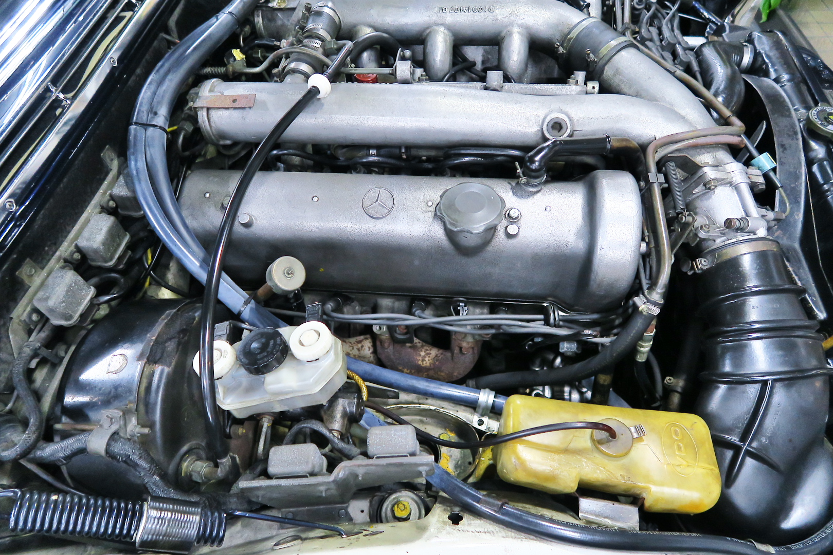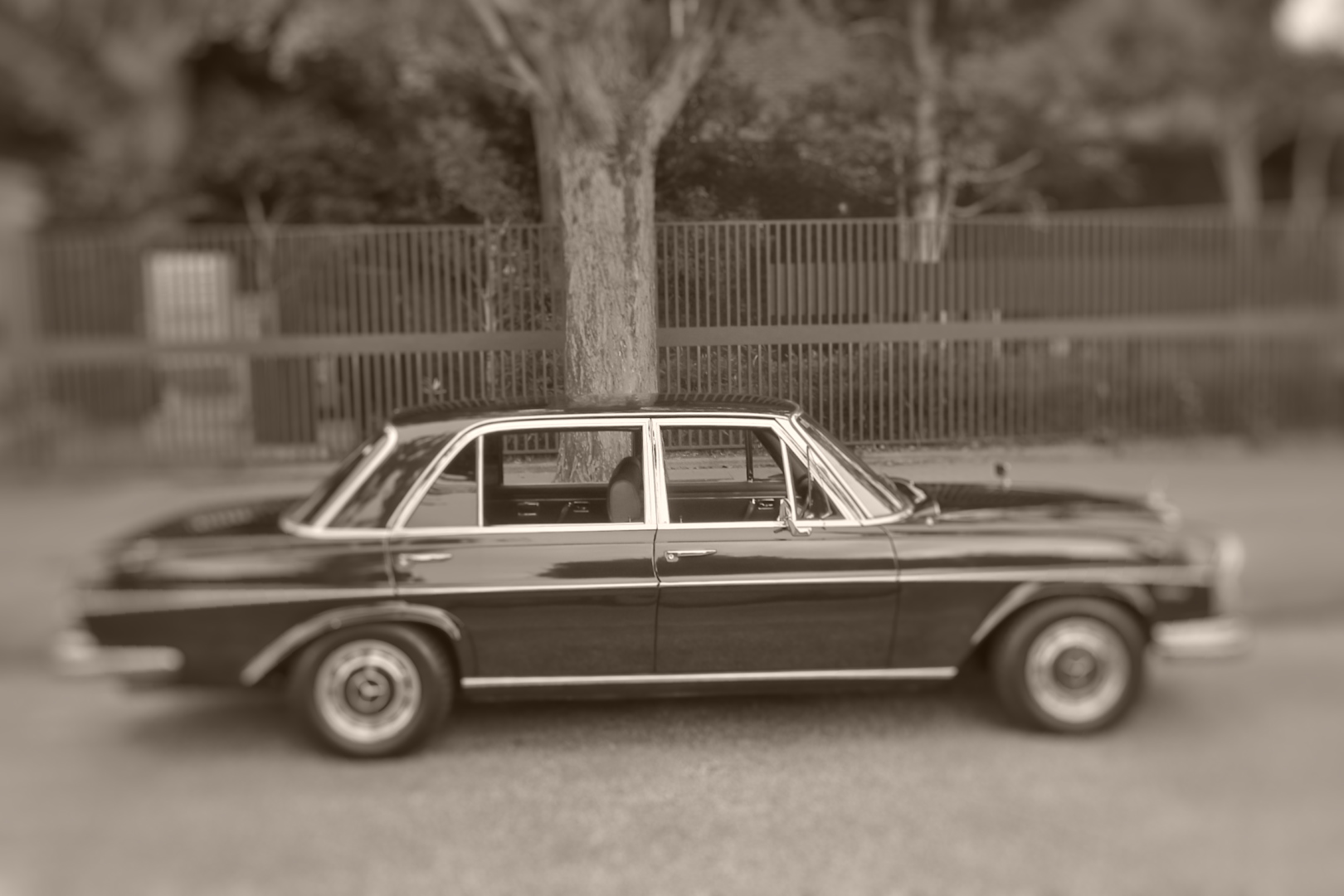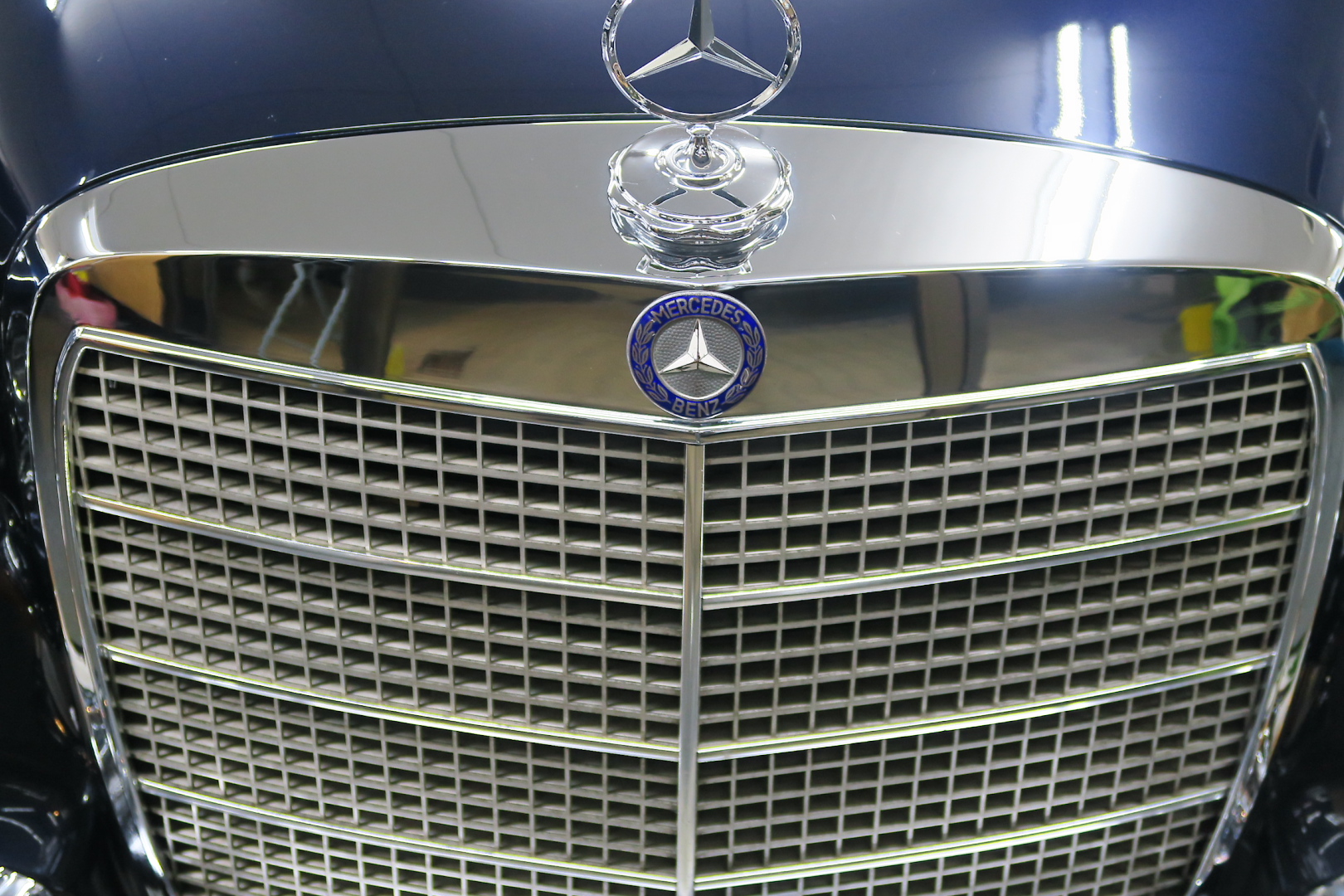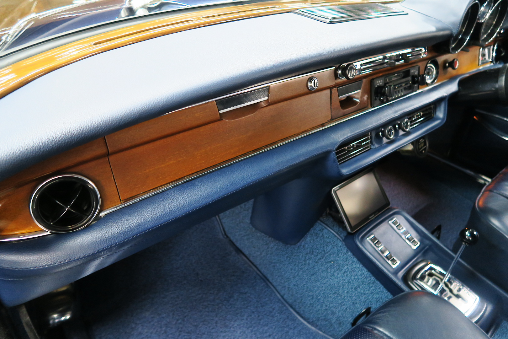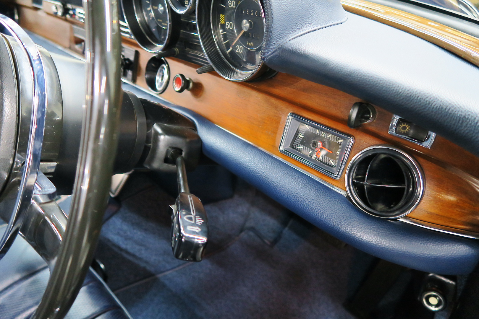 「300SEL 6.3」物語 1967年〜1972年の間に生産された「W109」タテ目の「300SEL」の 「6.3」である。 それも、ウエスタン自働車(ディーラー)物の「右ハンドル」 しかも、3オーナー、前オーナー様は、昭和59年から41年間も ご所有。 このモデルの生い立ちは、極めて興味深く、面白い。 こんな無茶なモデルがなぜに誕生したのか? ベースモデルは、1965年に発売されたばかりの最上級高級セダン「300SEL」 このモデルは、直列6気筒、3L、170馬力、 この頑丈なシャーシに目を付けたのが、エンジニアの「エーリッヒ・ヴァイクセンベル ロー」(文中:ベルローに短縮)。 1966年、「この300SELのシャーシなら、M600エンジンを積んだら面白そ〜 で、社内で こっそく時間を見つけて、載せ替え、完成させた車で、工場の敷地を 走り回った、、そして、その「音」でバレた、、 明らかに、聞くはずのない「音」、、工場責任者「ドルフ・ウーレンハウト」に見つか る。 彼はベルローに じっくり話を聞いたのち、試乗してみる。 結果、すぐに、開発へのGOサインを出す。 メーカー広報誌によれば、「書類にサインするとき、ウーレンハウトは、 ニヤリと笑ったはずだ、、」 なかなか 粋な会社である。 翌1967年、早くも市販モデル1台が完成。 正式モデル名: 「300SEL 6.3」 文字通り、「600リムジーネ」&「600プルマン」(1963年〜1981年)に積んだ 「M100」エンジン、V8、6.3L、250馬力、を移植。 これは、思った以上に販売不信だった「M100」の使い道を広げる意味もあった。 1968年から、正式に発売、1972年まで販売する。 生産台数: 「6526台」 この変態的怪物モデルは、想定外に 売れた。 ドイツ国内では、1839台しか売れていないが北米を中心とした海外で人気に火が付いた それは、現在でも同じ。 因みに、1967年は我が国でも、あの「トヨタ2000GT」が販売された年。 スペックを比較してみると: ・「300SEL 6.3」 最高速:「221km」 0−400m:「15.4秒」 ・「トヨタ2000GT」 : 「220km」 0−400m:「15.9秒」 ・「67’ ポルシェ911S」 :「225km」 0−400m:「15.8秒」 ・「70’ ハカスカGTR」 : 「200km」 0−400m:「16.0秒」 国内無敵の「2000GT」も、「6.3」に及ばず、ポルシェも「S」以外じゃ、太刀打ち できず、後年発売の「GTR」は、ぶっちぎられる、、まさに、スーパースポーツカー 、、「セダン」のくせに、、本物の「羊の皮をかぶった狼」! しかも、エアサスにレベルコントロール(車高自動調整)、AT、PW、パワステ、 クーラー付きで、乗心地も快適。「アウトバーンの覇者」。 では、当個体のお話: ウエスタン自働車(=ヤナセ=ディーラー)物、右ハンドル、3オーナー 前オーナー様は、昭和59年(1984年)より、2025年まで 41年間 ご所有。 聞けば分かる有名企業のオーナー様で、入手当初は、ヤナセ整備、できるメカニックが 引退したのちは、通常整備は、地元整備工場で、「6.3」ならではの整備は、例の神戸 の専門店様にて。この専門店さまで、2021年に大掛かりな整備、明細残る。 ・エアサス関係・レベリング関係・インジェクション関係・コンプレッサー・ウォータ ーポンプ関係・ブレーキ関係など、「6.3」における「キモ」整備が施されている。 しかも、長年のお付き合いの「正しすぎる一時預かり人」である、前オーナー様は、 弊社に持つ込むまえ、2025年8月、「シーザーさんに迷惑がかからないように」と、 前述の専門店様に入庫、点検依頼、「どこか不具合箇所があれば直しといて」 で、・ヒーターコア脱着・修理、プラグ交換、エンジンオイル交換、各グリスUP、 などなどが施された上で、当社入庫。 感謝・感激。 また、お次のオーナー様にとっても、相当な安心材料であろう。 お金持ち あるあるだが、記録簿とか なんですか それ である。 ただ、車検証上で分かるのは、 令和3年12月: 「77.200km」 令和5年12月: 「78.900km」 現在: 「79.200km」! さらに、当個体は、正しい整備だけでなく、内外装もレストアが施されている。 外装は: 「ダークブルー」メタリックに、全バラシ「オールペイント」済み。 *元色は、「パピルス・ホワイト」 (カラーVINで分かる) 塗装状態も素晴らしい◎。 「300SEL」の5mボディに良く似合うカラーで、重量感を感じる。 実際には、オリジナル「300SEL」の重量は、「1655kg」で、「6.3」は、 「1740kg」なので、85kgしか重くない(エンジンの重さの違い分)のが、、 なんだが、まったくオーラが異なるのは、、私の「6.3」への憧れ だからだけでは なさそうだ。 内装は: 「紺・本革」 「総張替え」 ・シート・ダッシュボード・天井内張り・カーペットに至るまで全て。 で、ほとんど乗らないものだから、今もバリビカ。 ただ、ウッド類は、オリジナルのまま なので、風情が残る。 ここが素のままなので、時代があう。 ・4速AT・パワーステアリング・パワーウインド・クーラー、快適な怪物マシン。 後付けで、・パナ「ゴリラ」ナビ(取り外し可)・「バックカメラ」連動・ETC・ 「前後ドラレコ」・「油圧メーター」 即戦力。 機関系: エンジンは、前述の通り、「M100」、当