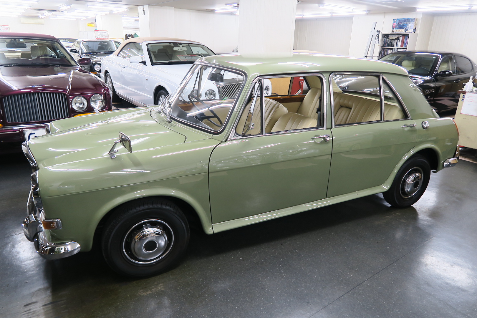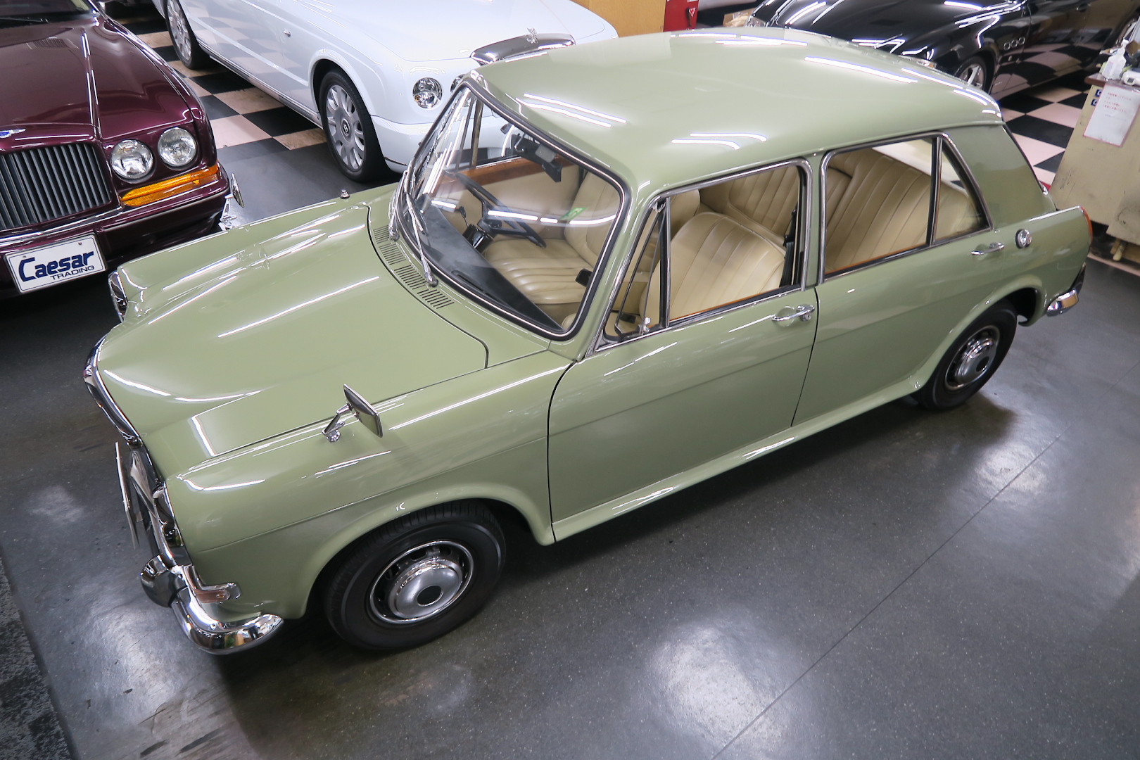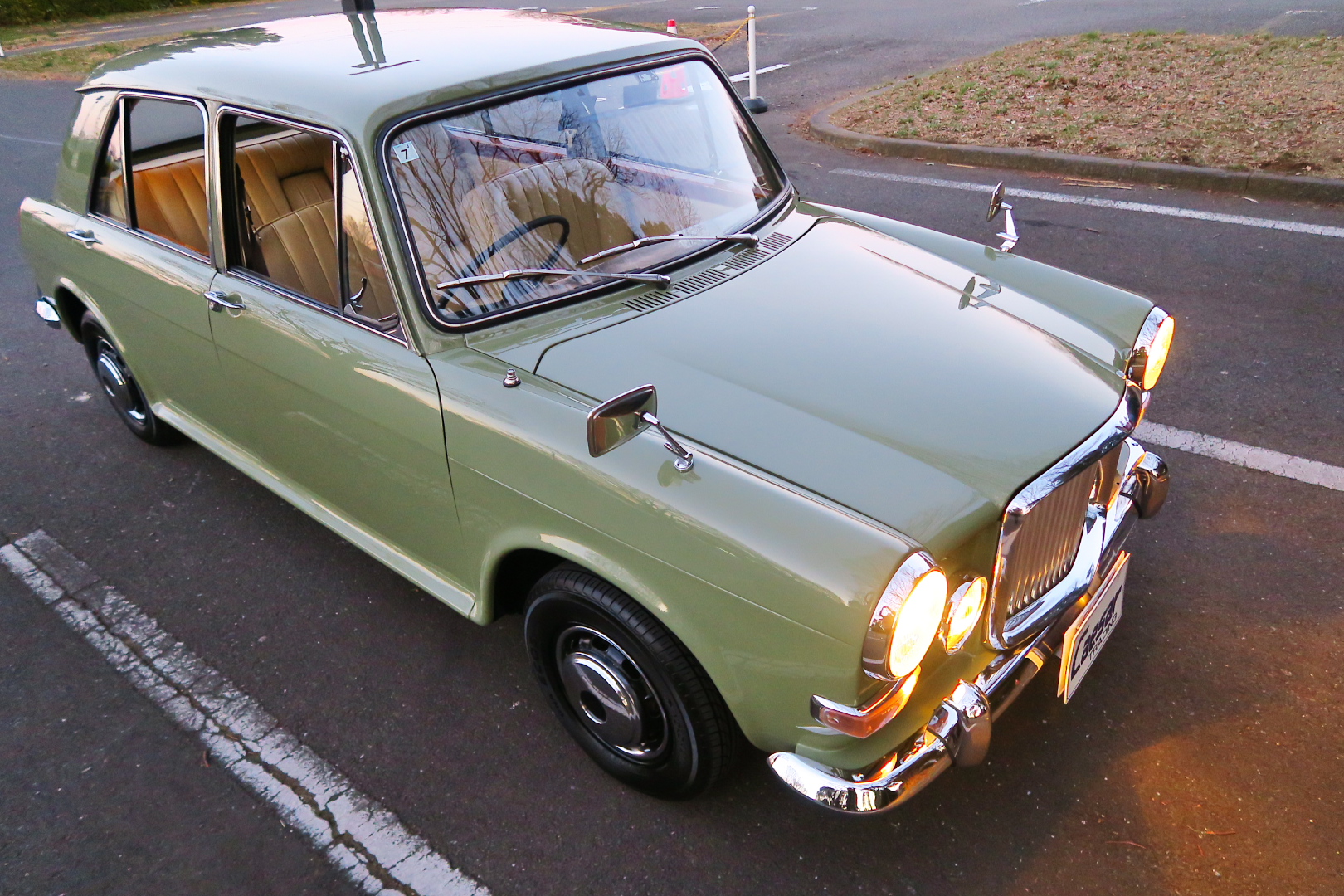 ヴァンデンプラ 「プリンセス・1300マーク-3」 通称:「バンプラ」 BMC「ADO16」 このモデルは、1962年~1974年の間に生産された。 ご存じ「MINI」は、「ADO15」=「Austin Drawing Office」 「プロジェクト15」モデル。 「ADO16」は、その後継プロジェクト・モデル。 1898年 ベルギーで創業、1913年に英国支社を作り、その後、ロールス&ベントレーなどの 数々の高級車をコーチビルドした名門「ヴァンデンプラ」社 *フランス読みで「ス」抜き だが、戦後、「オースチン」の参加に、ADO16の時代には、「BMC」グループ (ブリテッシュ・モーター・コーポレーション)の一部門に飲み込まれていた。 で、「ADO16」は、英国お得意の「バッジエンジニアリング」(数社でバッジを変えて) で作られた。 まず、機関系担当は、MINIの成功で有名な「アレック・イシゴニア」師匠が、 そうなると、エンジンは、横置きのFFで、室内広々、足回りは、あの「ハイドラスティッ ク・サス」、ゴムと液体、全輪関連懸架式、って発明品、これで、乗り心地もバツグン! ボディデザインは、巨匠「ピニンファリーナ」師匠が! このお二人のコラボ作品 ってだけでも価値有りなわけだが、 「バッジ・エンジニアリング」に参加したメーターも、これまた最高の「神6」。 1. 「モーリス」 :大衆版 :1962年8月〜 2. 「オースチン」 :大衆版 :1963年9月〜 3. 「MG」 :スポーツ版 :1962年10月〜 4. 「ライレー」 :ちょい高級版 :1965年9月〜 5. 「ウーズレイ」 :MG&ライレー的版 :1965年9月〜 6. 「ヴァンデンプラ」:超高級版 :1963年10月〜 各メーカーごとに、グリルや内装、チューニングが異なり、ユーザーは自分好みの選択を することができた。 最初は、排気量「1100」(1098cc)で、「プリンセス1100」 ・「MT」モデルで、55馬力 ・「AT」モデルで、48馬力 *1965年から、オプションで採用(AP社製・4速AT) 1967年10月 排気量が、「1300」(1275cc)になり「プリンセス1300マーク2」に。 ・「MT」モデルで、62馬力 ・「AT」モデルで、65馬力 この時、ボディデザインも若干変更され、そりたったテール・フィンを削り、寝かせた。 文章で書くと? だが、この違いは決定的で、すぐに判別できる。 他、室内、スイッチ・パネルの配置も変更、イグニッションは、パネル上からハンドル ポスト横に移動など。 今回は、「バンプラ」版のみの話 1971年9月 「マーク3」に進化する。 このころになると、「ライレー」「MG」「モーリス」などの「ADO16」モデルは消滅、 「オースチン」においては、グリルがプラになど、コストダウンでしかなかったが、 流石に「バンプラ」では、フロントフェンダーの小さなサイドマーカーの撤去のみという 僅かすぎる変更しか行っていない。 他、ペダルが変更されたが、、気がつかない。 この「ADO16」の衰退は、1966年に発表され、英国で大ヒットした「ダットサン」の 「サニー」に動力性能で劣り、価格で劣り、駆逐された というのが大きい、と考える。 そうなると、「性能」で勝負していない「バンプラ」しか残れない。 1973年に「ウーズレイ」版も終わったが、「バンプラ」のみは、最後の最後、 1974年6月19日まで生産され続けた。 日本車では、到底敵わない、「品格」「気品」「豪華さ」「歴史」「センス」、その全てを 持ち合わせていたのだ。 そう「バンプラ」は、ロールス・オーナーが自身の所有地(品川区くらいの)を散歩し、 お買い物にでも出かけるためのクルマ、、 余談ながら、英国最大の敷地を持つ バクリー公爵んちは、東京都23区全体より広い。 ロールス・オーナーに、「うその豪華さ」「無駄な豪華さ」「豪華さの自慢」など、 通用しない。 彼らは、「本物」を瞬時に見極める。 むしろ、この「バンプラ」が「本物」であることを見極めたのは、そんなクラスの英国人 のみだったかも、 それを裏付ける証拠が、生産台数、大半を英国人が購入しているのだ、、 「1100マーク1」 1964年〜1968年 : 「16.007台」 「1300マーク2」と「1300マーク3」は、ほぼ同じなので同カウント 1968年〜1974年 : 「23.734台」 トータル: 39.741台 この生産台数は、「ADO16」という大型プロジェクトのモデルの中では極端に少ない。 *「オースチン」は、「1.119.800台」、「モーリス」は、「801.966台」、 「ライレー」でさえ、「124.860台」 要は、「バンプラ」のみ高額過ぎたのだ。 「バンプラ」の場合、更に、この台数の内、なんと「36.610台」が、英国本国で登録され、 他国に輸出されたのは、わずか、「3.131台」に過ぎない。 当個体の「1972年」では、たったの「1台」が輸出されただけ、 「マーク2」&「3」、全体でも、「825台」が輸出されただけ。 こりゃもう「確率」からして、「バンプラ」の極上ものなど、「英国」でしか見つかりまい。 因みに、「日本」の当時のディーラーは、「キャピタル企業」:「28台」が正規輸入された だけ。 *「バンプラ」「オースチン」が、「キャピタル企業」で、 「MG」「ライレー」「ウーズレイ」「モーリス」は、「日英自動車」がディーラー。 さてと、当個体の お話: そん