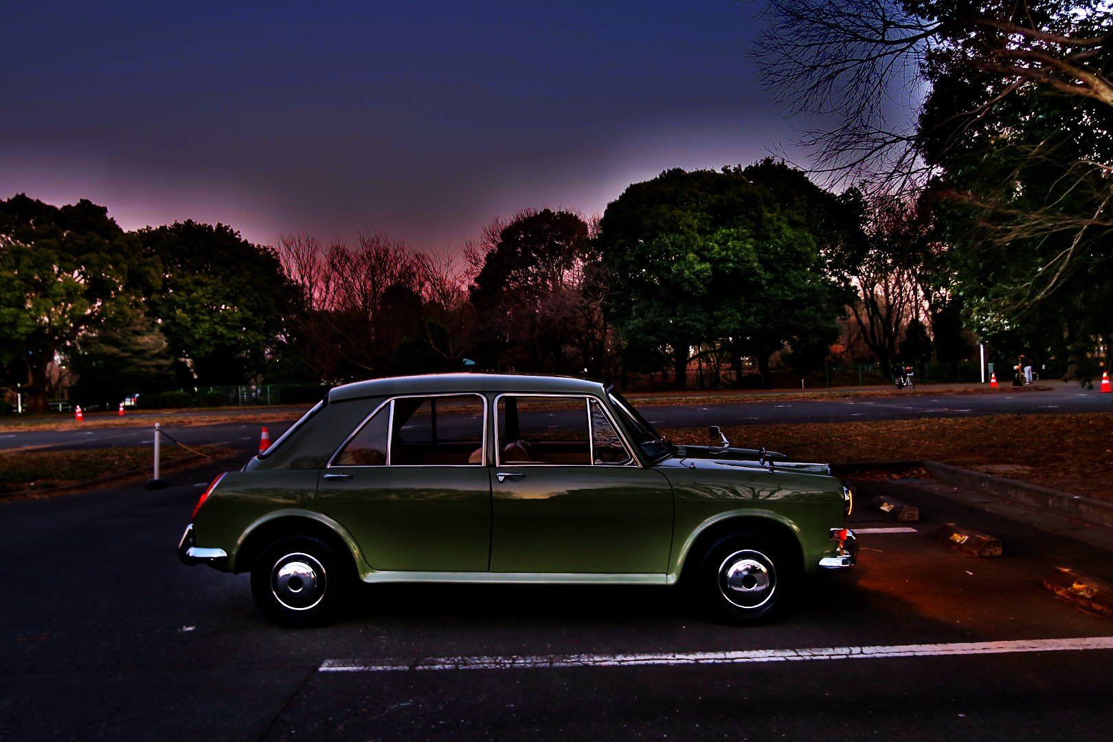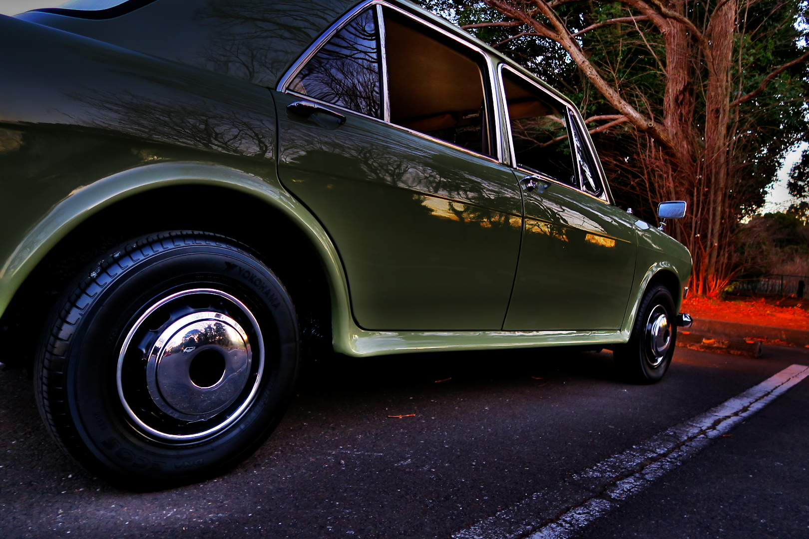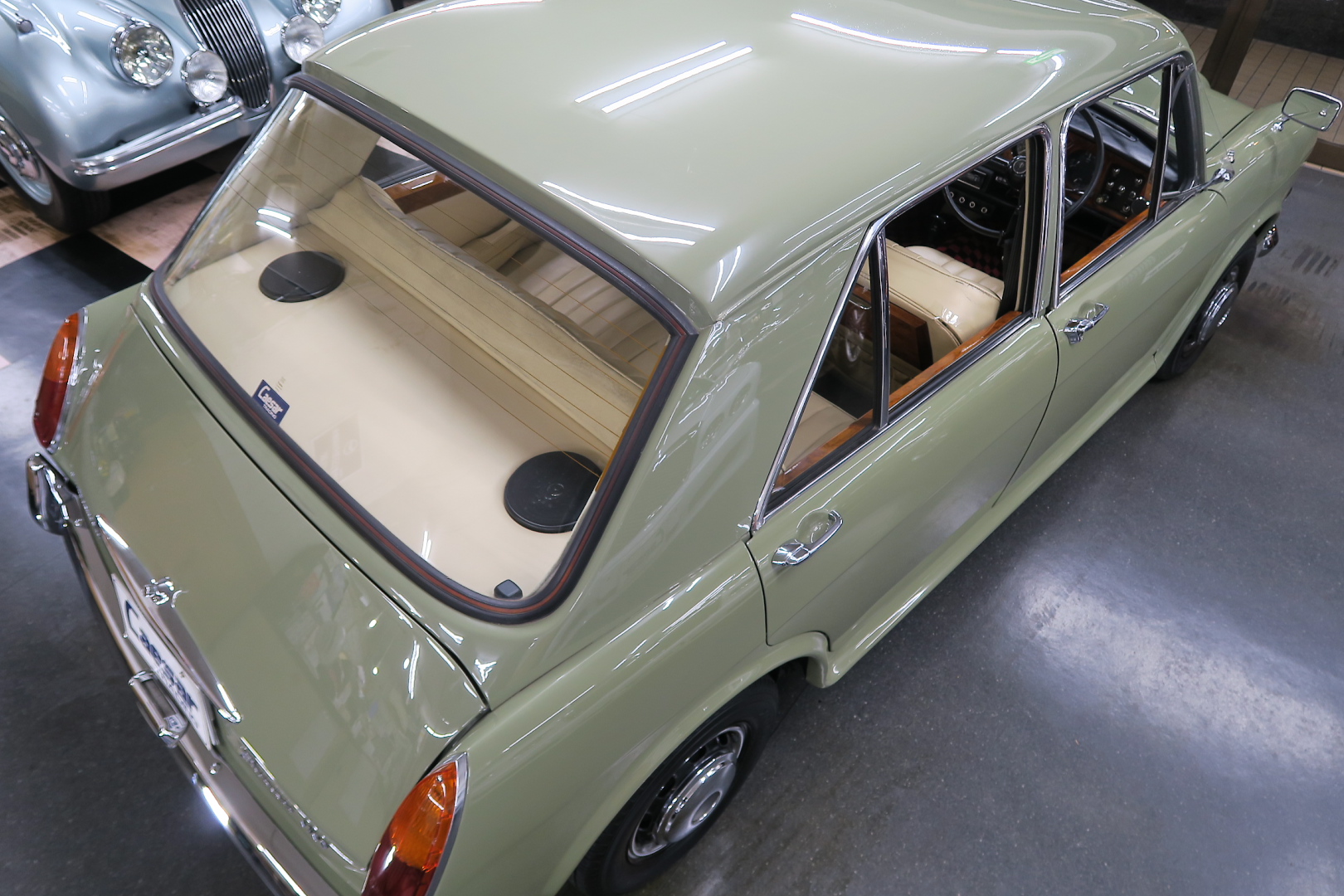 ヴァンデンプラ 「プリンセス・1300マーク-3」 通称:「バンプラ」 BMC「ADO16」 このモデルは、1962年~1974年の間に生産された。 ご存じ「MINI」は、「ADO15」=「Austin Drawing Office」 「プロジェクト15」モデル。 「ADO16」は、その後継プロジェクト・モデル。 1898年 ベルギーで創業、1913年に英国支社を作り、その後、ロールス&ベントレーなどの 数々の高級車をコーチビルドした名門「ヴァンデンプラ」社 *フランス読みで「ス」抜き だが、戦後、「オースチン」の参加に、ADO16の時代には、「BMC」グループ (ブリテッシュ・モーター・コーポレーション)の一部門に飲み込まれていた。 で、「ADO16」は、英国お得意の「バッジエンジニアリング」(数社でバッジを変えて) で作られた。 まず、機関系担当は、MINIの成功で有名な「アレック・イシゴニア」師匠が、 そうなると、エンジンは、横置きのFFで、室内広々、足回りは、あの「ハイドラスティッ ク・サス」、ゴムと液体、全輪関連懸架式、って発明品、これで、乗り心地もバツグン! ボディデザインは、巨匠「ピニンファリーナ」師匠が! このお二人のコラボ作品 ってだけでも価値有りなわけだが、 「バッジ・エンジニアリング」に参加したメーターも、これまた最高の「神6」。 1. 「モーリス」 :大衆版 :1962年8月〜 2. 「オースチン」 :大衆版 :1963年9月〜 3. 「MG」 :スポーツ版 :1962年10月〜 4. 「ライレー」 :ちょい高級版 :1965年9月〜 5. 「ウーズレイ」 :MG&ライレー的版 :1965年9月〜 6. 「ヴァンデンプラ」:超高級版 :1963年10月〜 各メーカーごとに、グリルや内装、チューニングが異なり、ユーザーは自分好みの選択を することができた。 最初は、排気量「1100」(1098cc)で、「プリンセス1100」 ・「MT」モデルで、55馬力 ・「AT」モデルで、48馬力 *1965年から、オプションで採用(AP社製・4速AT) 1967年10月 排気量が、「1300」(1275cc)になり「プリンセス1300マーク2」に。 ・「MT」モデルで、62馬力 ・「AT」モデルで、65馬力 この時、ボディデザインも若干変更され、そりたったテール・フィンを削り、寝かせた。 文章で書くと? だが、この違いは決定的で、すぐに判別できる。 他、室内、スイッチ・パネルの配置も変更、イグニッションは、パネル上からハンドル ポスト横に移動など。 今回は、「バンプラ」版のみの話 1971年9月 「マーク3」に進化する。 このころになると、「ライレー」「MG」「モーリス」などの「ADO16」モデルは消滅、 「オースチン」においては、グリルがプラになど、コストダウンでしかなかったが、 流石に「バンプラ」では、フロントフェンダーの小さなサイドマーカーの撤去のみという 僅かすぎる変更しか行っていない。 他、ペダルが変更されたが、、気がつかない。 この「ADO16」の衰退は、1966年に発表され、英国で大ヒットした「ダットサン」の 「サニー」に動力性能で劣り、価格で劣り、駆逐された というのが大きい、と考える。 そうなると、「性能」で勝負していない「バンプラ」しか残れない。 1973年に「ウーズレイ」版も終わったが、「バンプラ」のみは、最後の最後、 1974年6月19日まで生産され続けた。 日本車では、到底敵わない、「品格」「気品」「豪華さ」「歴史」「センス」、その全てを 持ち合わせていたのだ。 そう「バンプラ」は、ロールス・オーナーが自身の所有地(品川区くらいの)を散歩し、 お買い物にでも出かけるためのクルマ、、 余談ながら、英国最大の敷地を持つ バクリー公爵んちは、東京都23区全体より広い。 ロールス・オーナーに、「うその豪華さ」「無駄な豪華さ」「豪華さの自慢」など、 通用しない。 彼らは、「本物」を瞬時に見極める。 むしろ、この「バンプラ」が「本物」であることを見極めたのは、そんなクラスの英国人 のみだったかも、 それを裏付ける証拠が、生産台数、大半を英国人が購入しているのだ、、 「1100マーク1」 1964年〜1968年 : 「16.007台」 「1300マーク2」と「1300マーク3」は、ほぼ同じなので同カウント 1968年〜1974年 : 「23.734台」 トータル: 39.741台 この生産台数は、「ADO16」という大型プロジェクトのモデルの中では極端に少ない。 *「オースチン」は、「1.119.800台」、「モーリス」は、「801.966台」、 「ライレー」でさえ、「124.860台」 要は、「バンプラ」のみ高額過ぎたのだ。 「バンプラ」の場合、更に、この台数の内、なんと「36.610台」が、英国本国で登録され、 他国に輸出されたのは、わずか、「3.131台」に過ぎない。 当個体の「1972年」では、たったの「1台」が輸出されただけ、 「マーク2」&「3」、全体でも、「825台」が輸出されただけ。 こりゃもう「確率」からして、「バンプラ」の極上ものなど、「英国」でしか見つかりまい。 因みに、「日本」の当時のディーラーは、「キャピタル企業」:「28台」が正規輸入された だけ。 *「バンプラ」「オースチン」が、「キャピタル企業」で、 「MG」「ライレー」「ウーズレイ」「モーリス」は、「日英自動車」がディーラー。 さてと、当個体の お話: そん