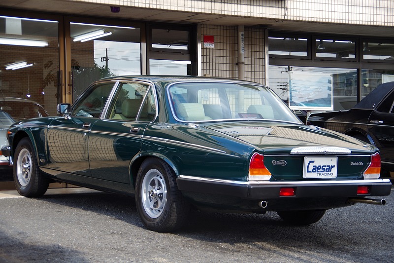 ディムラー「ダブルシックス」! 以前、弊社で販売させて頂いた「シーザー認定中古車」の「ダブルシックス」 あまりにもキレイ、、それに、ABS付きの最終モデル。 車屋も長く(30年ほど)やっているが、、何故か、昔から、綺麗な個体を見ると、 つい仕入れてしまう、魔性の車、「DD6」、この車の魅力は、一体何なんだろう? まずは、「ディムラー」と「DD6」の歴史から、紐解いてみよう。 イギリスで最も歴史の古い自動車メーカー、これだけでも すごい! ディムラー社の創業は、1893年、「フレデレリック・リチャード・シムズ」によって 「ディムラー・モーター・シンジケート」として設立された。 当初は、ドイツの「ダイムラー」社の販売代理店(エンジンのみ)としてスタートした。 この為(よく質問されるが)、「ディムラー」は、「ダイムラー」を英語読みしたもので、 元来の社名の意味は双方とも同じ自動車の発明者「ゴットリーフ・ダイムラー」氏に基ずく 、、だから、「ダイムラー」と呼んだところで、なんの問題も無いが、、紛らわしいので、 区別するため「発音」で分けている。 その後、1896年に、社名をディムラー・モーター・カンパニーLTDに変更、、 自社開発の高級自動車販売にも乗り出すと、ディムラー・エンジンを研究していた お陰で 、さっそく名声を得る。 1900年には、最初のイギリス王室後料車に採用されるにまでになる。 因みに、記念すべき最初の日本皇室、後料車もディムラーで、1912年式の6気筒が2台 納品されている。 1904年には、現在にまで引き継がれているディムラーの代名詞 波状のグリル=「フル ーテッド・グリル」採用 *これは、ラジエーターの熱を効率よく逃がすために考えられたもの。 1926年には、早くもX型12気筒(7136cc)のエンジンを載せた初代「ダブルシックス」を 発表(直6エンジンを2つ くっつけたので、ダブル6)、この車も、イギリス王室車輌にも採 用され、高級ブランドの代名詞となる。 *「格」はジャガーより、張るかに上ってこと、、 因みに、1926年時、ジャガー社の創立者・ライオンズは、スワロー・サイドカー・カン パニーでサイドカーを作っていた若干25歳の若造だった。 この初代DD6は、1937年に生産中止、再びDD6の名が復活するのは、1960年にディムラー がジャガーカーズ社に買収された(明らかにベントレーに憧れていたライオンズは、同格の ディムラーの名を、ここで手に入れたのだ)後、1972年7月まで待つことになる。 1972年:DD6シリーズ1の登場。 これは、1968年発表のジャガーXJ6のボディにEタイプのV12を積んだモデルでジャガー 社の頂点モデルに君臨していた。 エンジンは、名車:E タイプ・シリーズ3の12気筒を街乗り用にディチェーンしたもの。 このシリーズ1は、主にアメリカの保安基準に対応すべく、翌1973年にボディ改良が行われた (これがシリーズ2)ため、僅か1年間ほどで姿を消すことになる。 そして、 1979年、大掛かりなデザイン変更がなされ最終型ボディデザイン「シリーズ3」となる。 この改良デザインを担当したのが、「ピニンファリーナ」だったりする。 このDD6シリーズ3は、そのエレガントなデザインと シルキーな走りで、世界中で高評価 、、ボディデザインを変えることなく、各部の改良を繰り返し、1986年に同デザインの ジャガーXJ6が生産中止された後も1992年末まで生産され、1993年までデリバリーされた 各部に細かい改良をし続けた「シリーズ3」であるから、このモデルは、後期モデルになれば なるほど信頼性が増す。 特に、「乗る」なら、1987年以降の電気系統改良後のモデルが好ましい。 さらに、最終モデルとなる 1991年と1992年の「ABS」アンチロック・ブレーキ・システム 付きモデルがベストだ。 「DD6」の86年までモデルは、電気系統のトラブルが頻発したものだから、 全体的なイメージが悪くなってしまった。 これは、残念なことだが、、いい、、知ってる人だけで楽しめばよい。 言い切ろう。 「DD6」に乗るなら、91年か92年モデル! しかも、バッチリ整備された極上個体に限る。 もっとも、そんな個体は、探して見つかるものではない、、出会いを待つしかない。 永い歴史を持つ由緒正しいDD6、、この歴史を知って乗るとまた、一味違う、、車の風格や 優雅さってものは、真似のできるものではない。 Eタイプの血を引くV12エンジンの魅力も、乗った方にしか理解できまい。 当社のお客様でも何故かDD6だけは手放せないって方が多い。 さて、当個体 91年モデル、91年登録のディーラー車。 「ABS」付き、最終モデル。 王道:ブリテッシュ・レーシング・グリーンに、 内装も これまた王道:パーチメント・レザー。 如何にも、、である。 大変 美しい。 塗装の艶も文句ないし、 内装も、、 ↓お写真のとおり、◎コンディション。 内装の「革」は、「DD6」のみ、「コノリー」社製だ。 ただし、どこもかしこもロールス級に、、というわけには、販売価格的にいけず (91年新車時:1235万円) シート上面のみ「コノリー」張り、、言わなけ